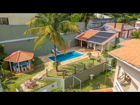 A casa possui acabamentos em cerâmica, aquecimento solar, e central de ar condicionado, garantindo conforto e eficiência energética. A cozinha é um destaque à parte, com armários embutidos e amplo espaço para preparação de refeições. Com 13 cômodos no total, incluindo depósito e lavanderia, esta propriedade é ideal para a vida moderna.